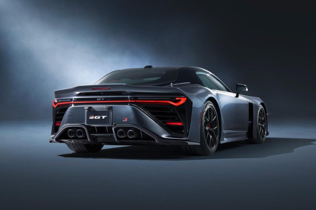 Styling? It looks properly furious. A vast flat bonnet leading down to a nose with more vents than a submarine. No Toyota badge up front — just a Gazoo Racing logo lurking like a warning label. The sides are smoothed out but bulging with intakes, ducts and aerodynamic witchcraft. Around the back there’s a ducktail spoiler nicked from Porsche’s dictionary, a full-width light bar, quad pipes, and a diffuser you could use to dice onions. Subtle? No. Brilliant? Yes.